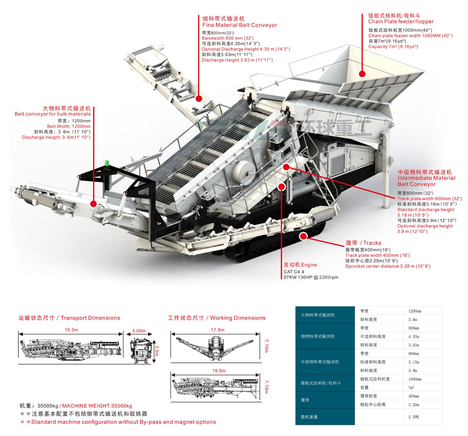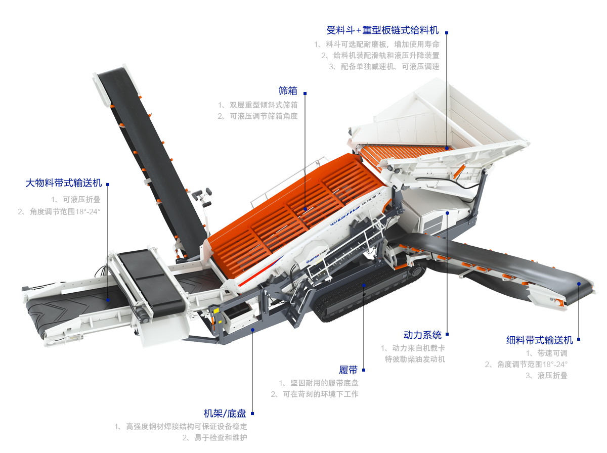 適用物料:河卵石、花崗巖、建筑垃圾、煤矸石、片麻巖、路面碎石等多類型物料的篩分分離