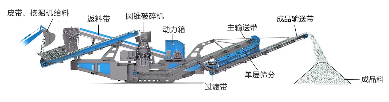 無需篩分和再破碎的工況下,篩分設備和細料帶式輸送機可快速拆卸。